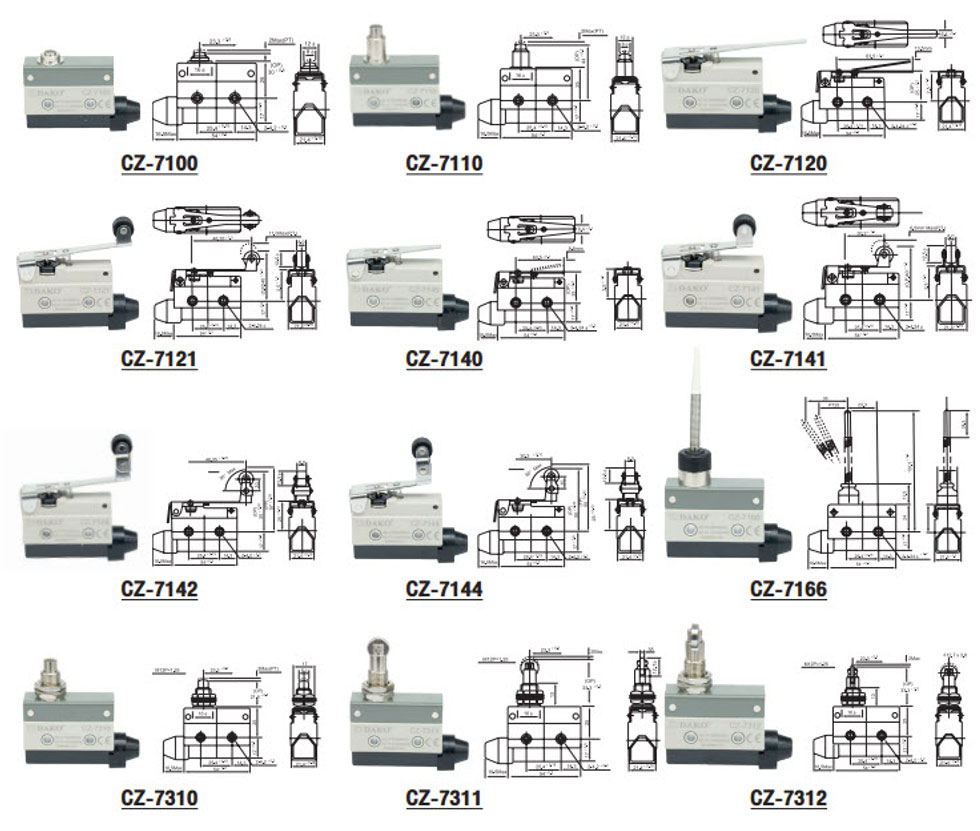 | CZ-7121 | Roller Plunger | 10A / 250V | SPDT 1NO 1NC | 10 | 195.- | |